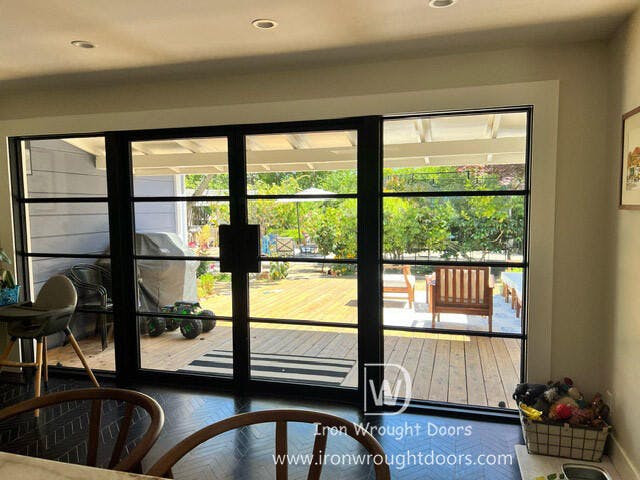 First impression counts. Choose IWD Wrought Iron French Doors to highlight the beauty of your house! Iron french doors allow maximum light into your house, making your room bright and lively. An iron french double door with two sidelights is becoming more and more popular in modern houses decoration. Our wrought iron front doors will be a great solution to provide your house against would-be intruders and add beauty and elegance to the doorway. What’s more, it creates a long-lasting great impression with fist -time visitors. It is the common way to upgrade the look of your house, making it the envy of the neighborhood and a better choice for potential buyers. If you are looking for a door that complements a modern house, then our wrought iron french doors would be a great solution to add an industrial, elegant tone to your house!